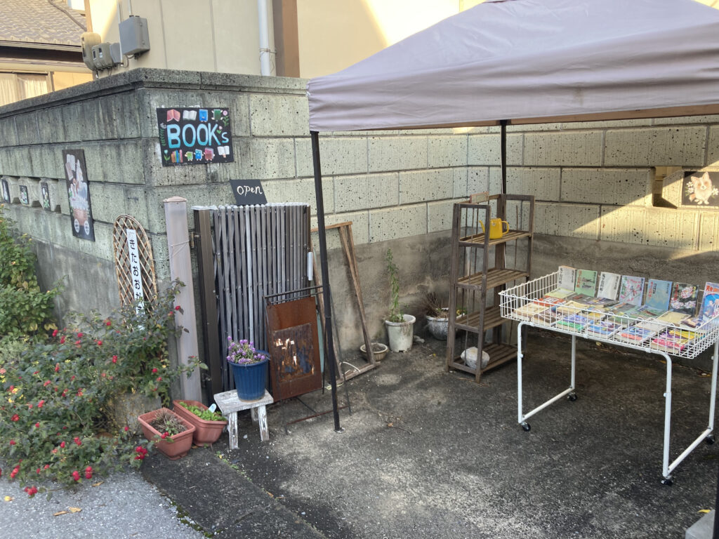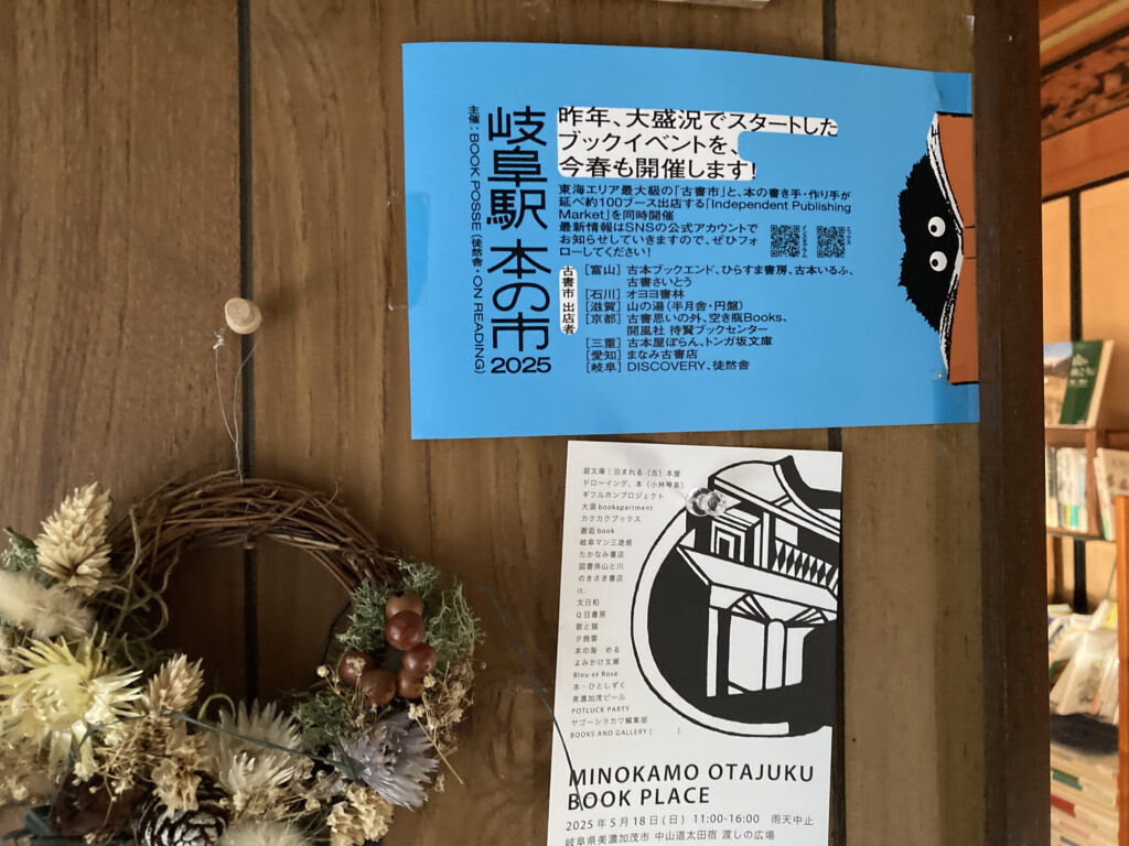 軒先に並ぶ古本、店内には絵本や新書も取り扱いあり、岐阜の文化や歴史にまつわる本なども置かれていました。多彩なラインナップ。